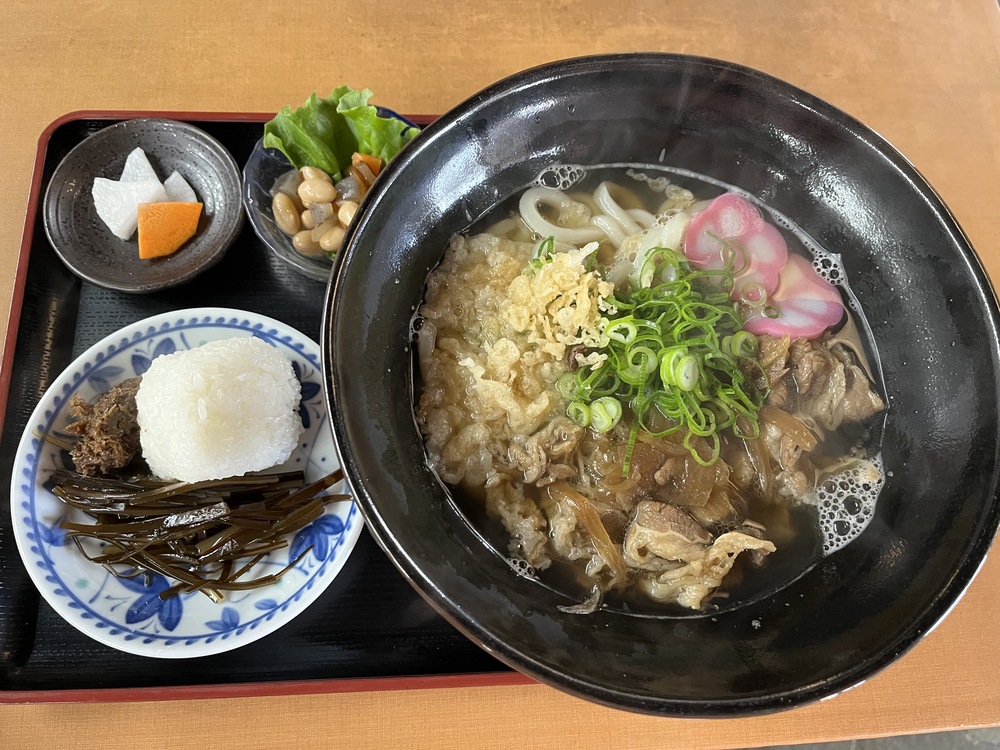 「肉うどん」と「おにぎり」