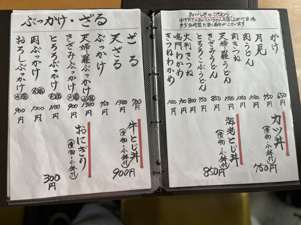 | 筆者おすすめメニュー | かけうどん、とろろ昆布、おにぎり |